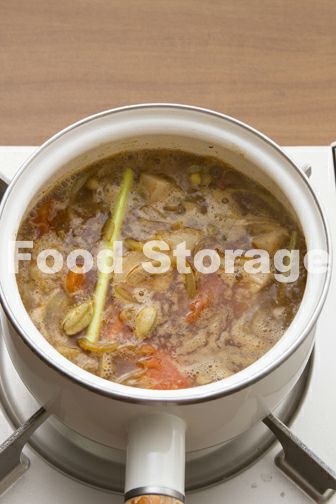| 比較的マイルドだが、様々なスパイスやハーブを入れるので、複雑な香りが楽しめる。たっぷり入れたレンズ豆がおいしい。 |