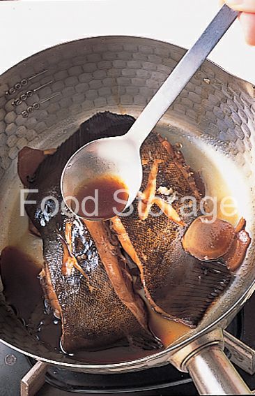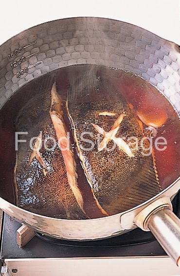 鍋にAとしょうがを煮立て、皮目を上にしてカレイを入れる。再び煮立ったらアクを取り、落しぶたをして10分ほど中火で煮る。 |