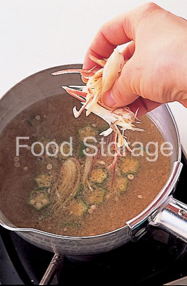 鍋にだし汁を沸かし、オクラを加えてみそを溶き入れる。沸騰直前でみょうがを加えて火を止め、器に盛る。 |