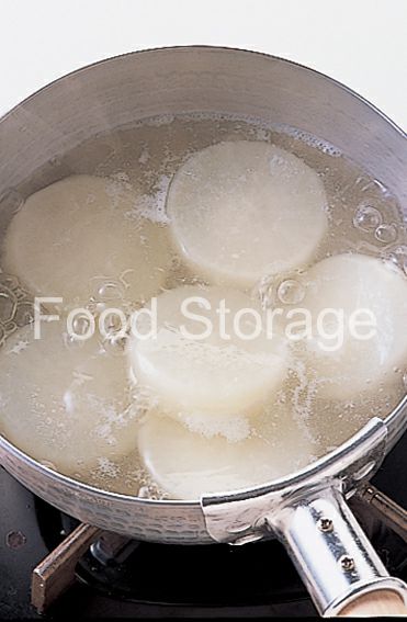 大根は皮をむいて1.5cm厚さの輪切りにし、面取りする。米のとぎ汁(分量外)と一緒に鍋に入れて火にかけ、竹串がスッとささるくらいまで下ゆでし、粗熱が取れたら水でさっと洗う。 |