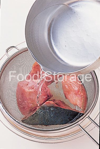 ぶりはひと口大に切って、塩をふって10分ほどおく。熱湯を回しかけ、流水で洗い、水けをふき取る。 |