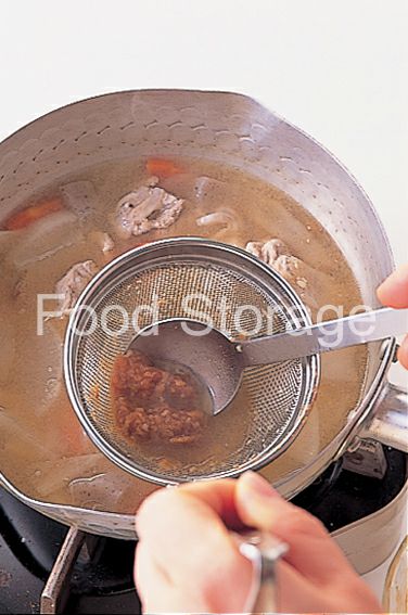 鍋にだし汁と野菜を入れて火にかけ、沸騰したらアクを取り、豚肉とこんにゃくを加える。みそ大さじ1を溶き入れ、材料がやわらかくなるまで煮る。 |