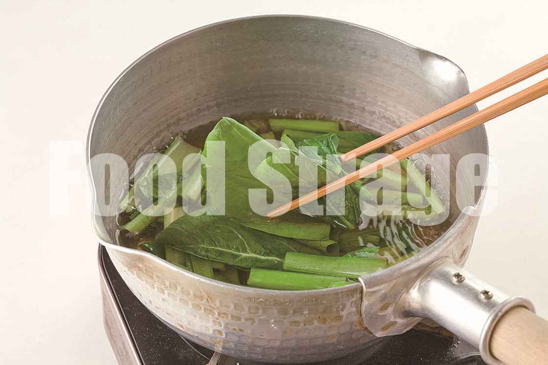 4.【ポイント】煮汁を煮立たせてから小松菜を加える
