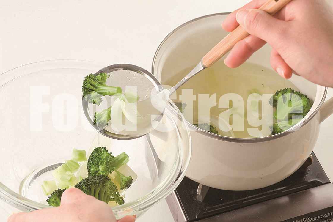 4の残りのスープを加えながら濃度を調整し、4のブロッコリーを加えて、塩、こしょうで調味する。 |