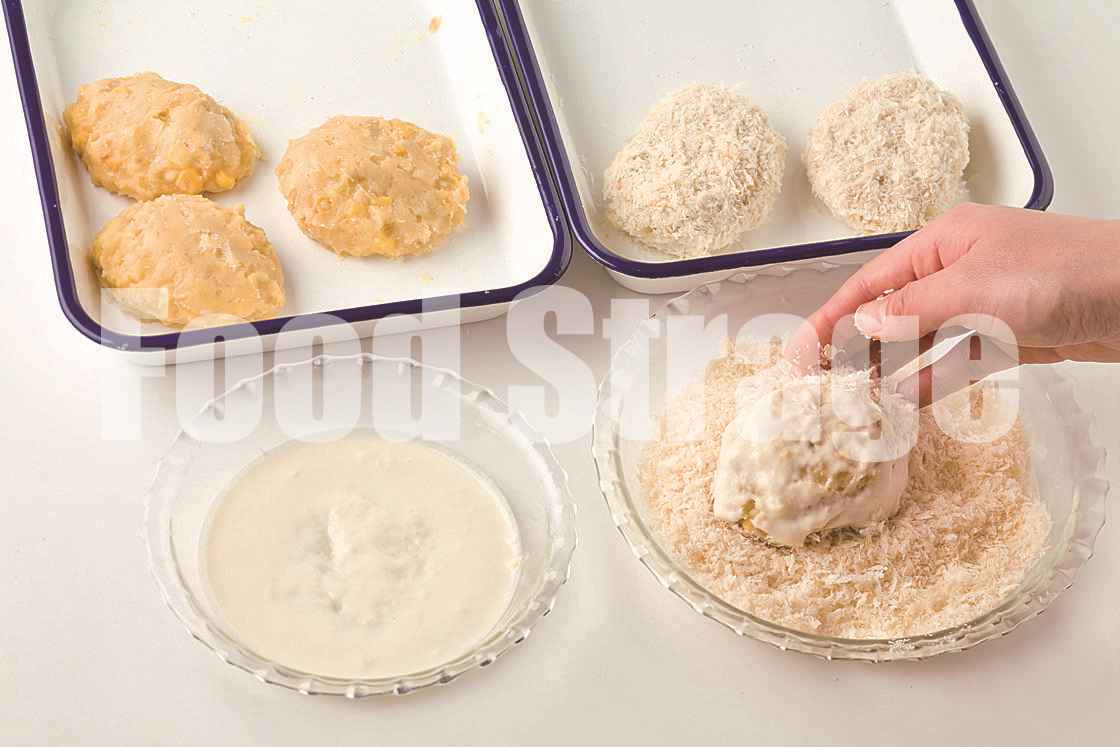7.【ポイント】クリーム状のコロッケは冷凍庫で冷やし固めると成形しやすい