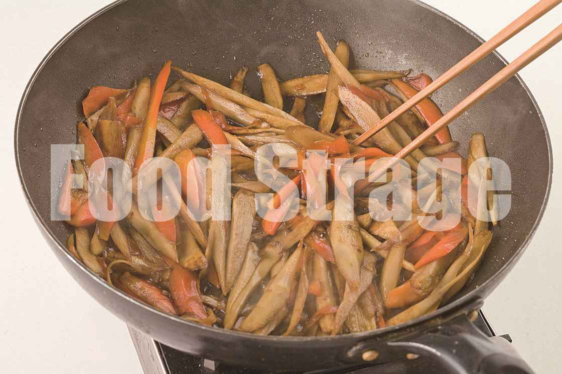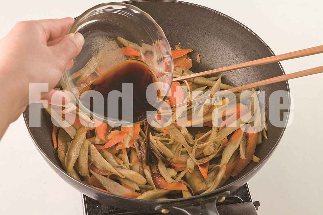 5.【ポイント】ごぼう、にんじんはささがきにして火の通りをよくし、手早く作る