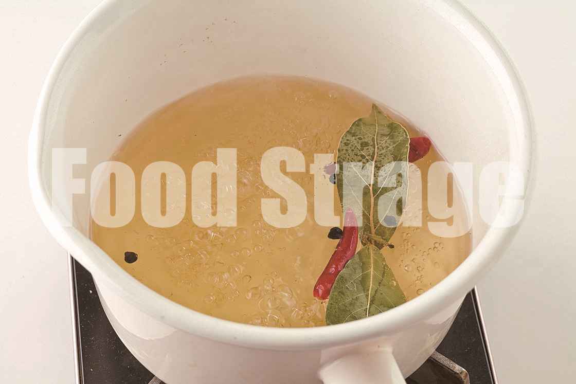 A(酢 水 ローリエ 砂糖 塩 赤唐辛子 黒粒こしょう)