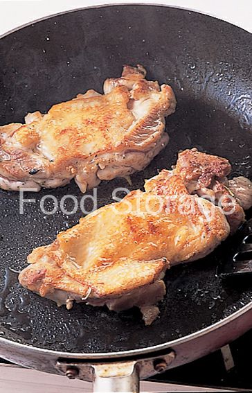 フライパンにオリーブ油を熱し、軽く汁気をきった1を皮目から入れて焼く。焼き色がついたら裏返して焼き、白ワインを加えて弱火にしてふたをし、中まで火を通す。 |