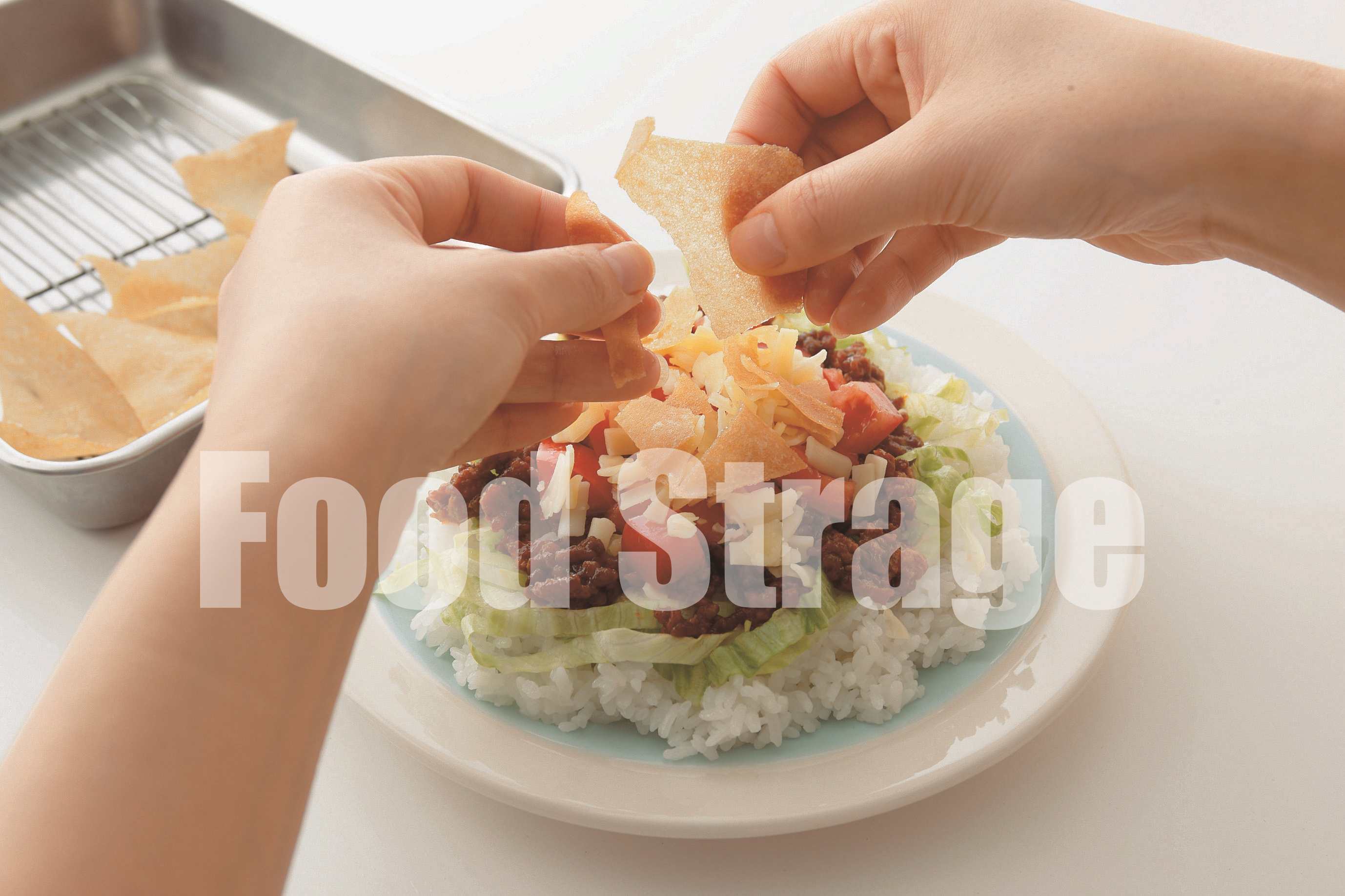 | 【節約】パリパリタコライス+オニオンスープ(献立) |