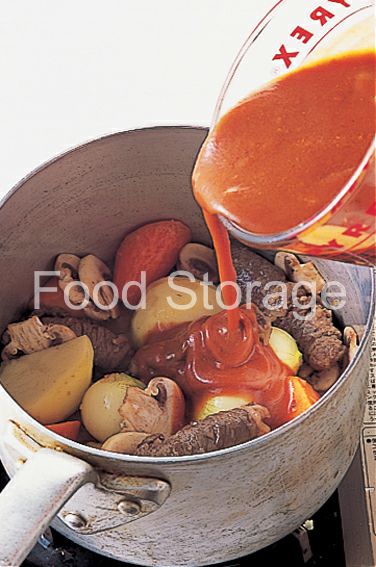 鍋にバターを溶かし、にんにくを炒める。香りが出たら1の巻終わりを下にして入れ、焼き色をつける。じゃがいも、にんじん、マッシュルーム、小玉ねぎを入れて炒め、赤ワインを加えてアルコールを飛ばす。 |