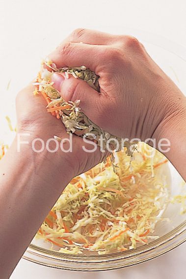 キャベツ、にんじんはせん切りにし、塩をふってしばらくおく。水けをしっかり絞る。 |