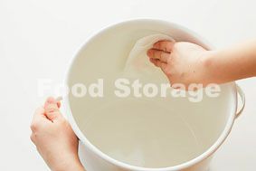 漬ものにカビや雑菌が繁殖すると食べられなくなってしまいます。素材に触れる容器や重し、押しぶたなどは必ず使う前に消毒しましょう。煮沸をしたり、熱湯をかけたり、アルコール度数が35度以上の酒をきれいなふきんやペーパーにしみ込ませて拭いてもOKです。 |
