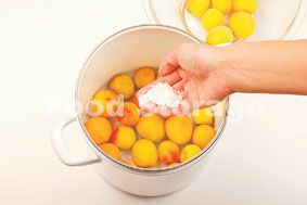 粒子が粗く、しっとりとしたあら塩は、素材にからみやすく、溶けやすいため、梅に早く浸透し、梅酢があがりやすくなります。しっかり梅酢があがって梅が梅酢に浸った状態なら、カビも生えにくくなります。そのためには塩を梅全体にしっかり回らせることも大切です。 |