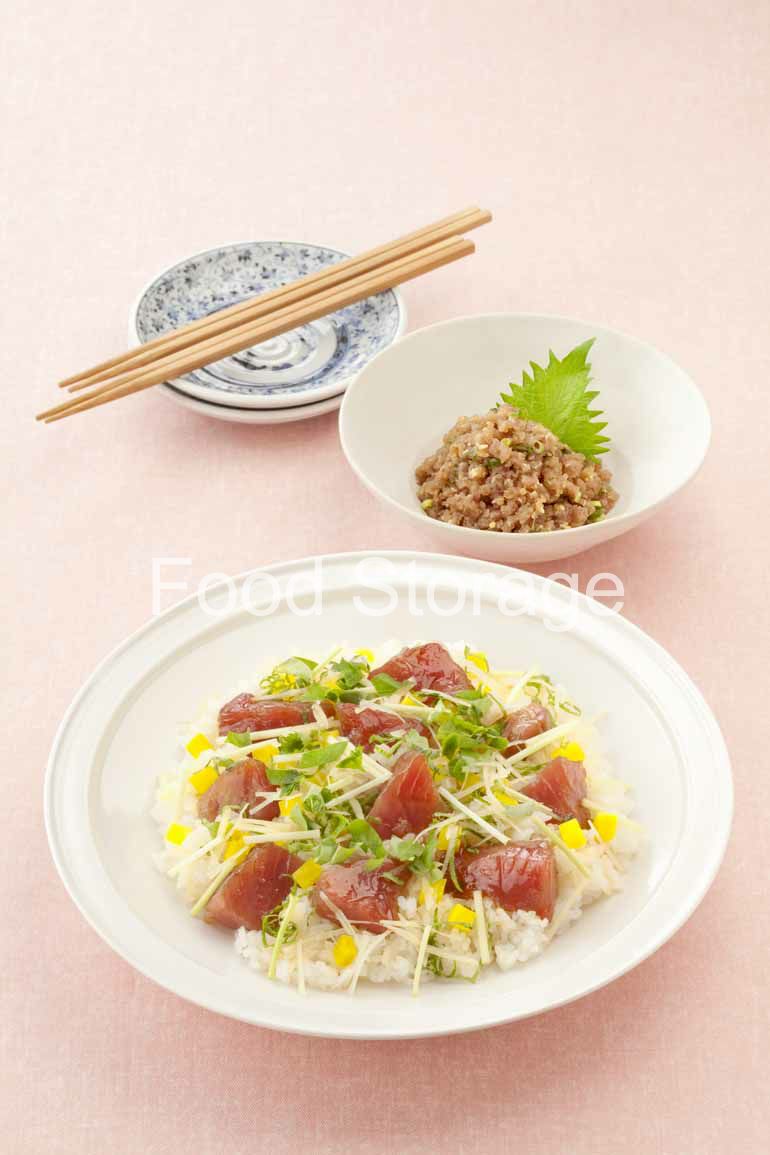 寿司めしに1を汁ごと混ぜて器に盛り、2を散らす。