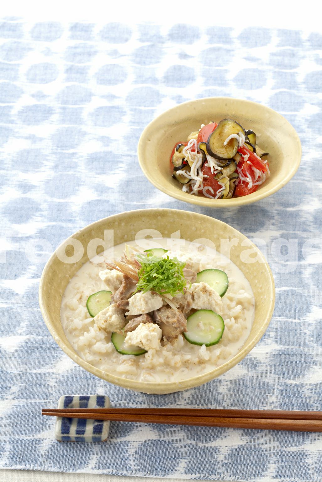 きゅうりは薄い輪切りにし、青じそ、みょうがはせん切りにして、豆腐は重しをして水きりする。 |