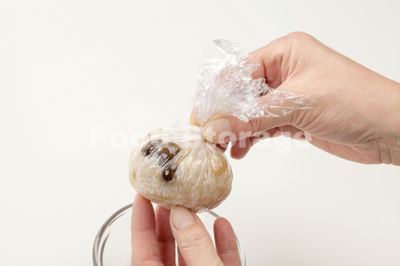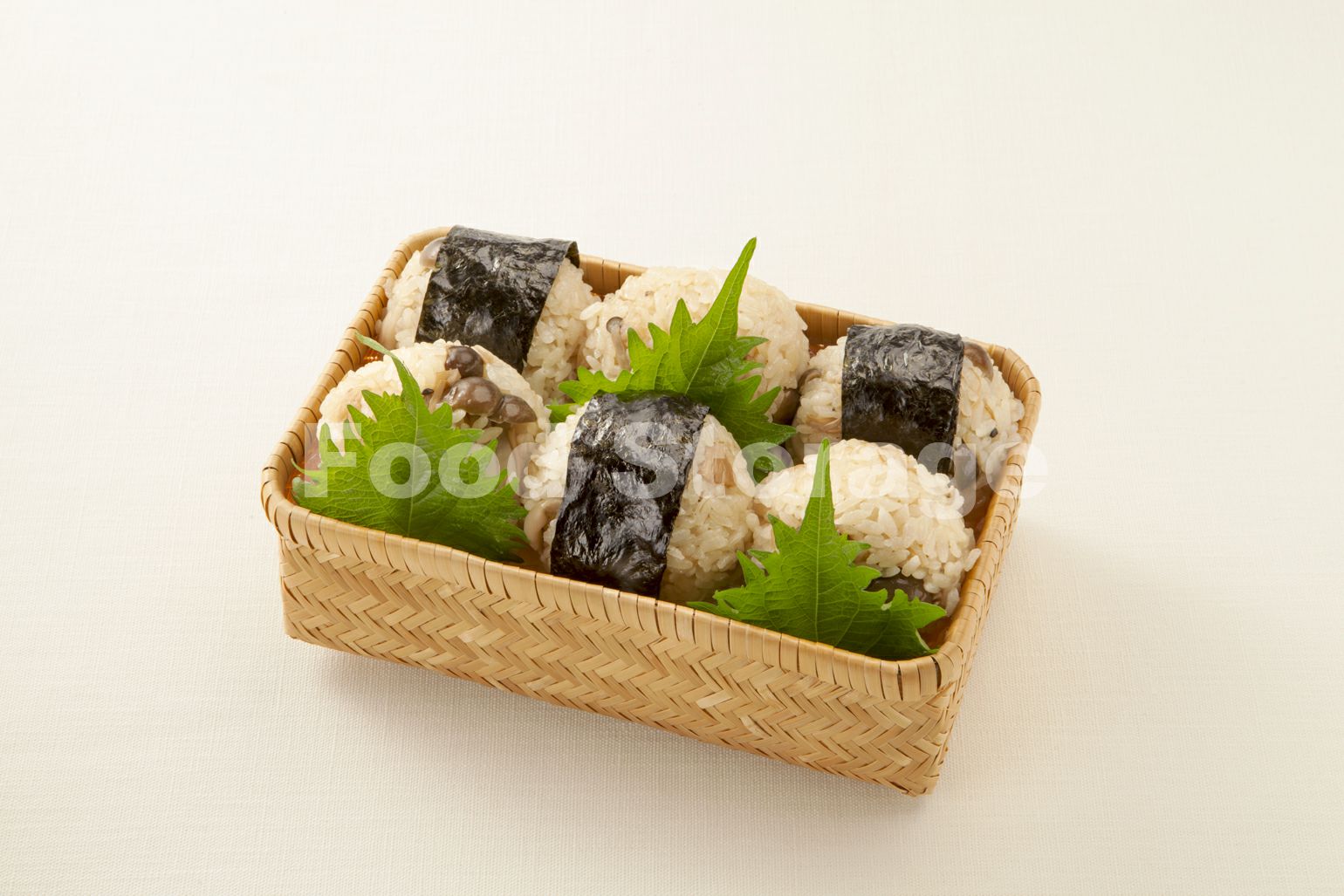 (3)6等分にしておにぎりにし、青じそやのりを巻く。