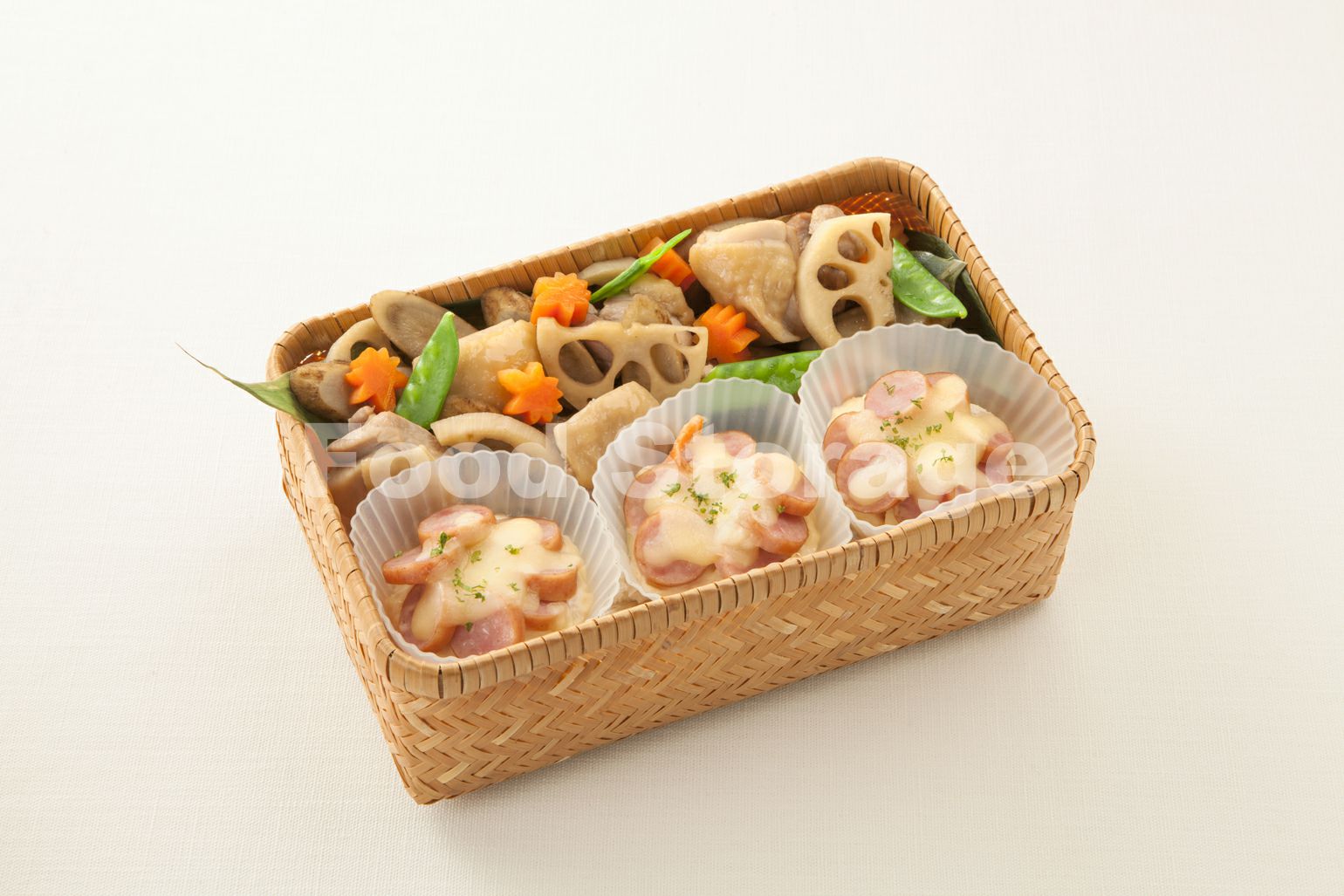 (2)耐熱容器にポテトサラダ、1を入れてチーズをのせ、オーブントースターで約3分焼く。