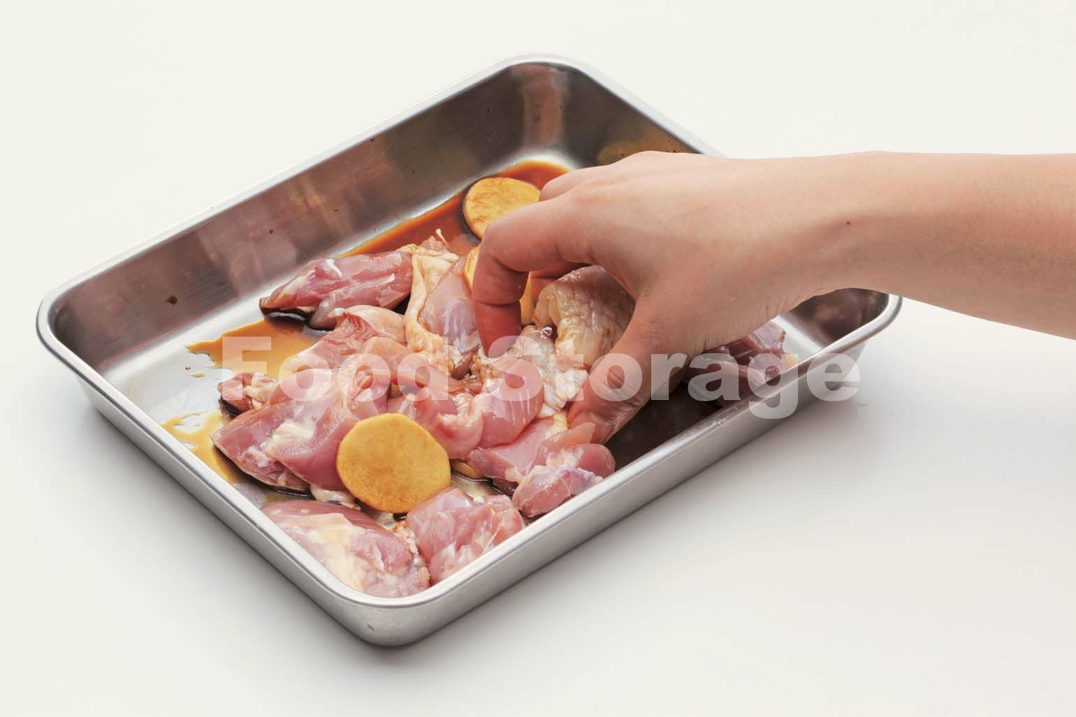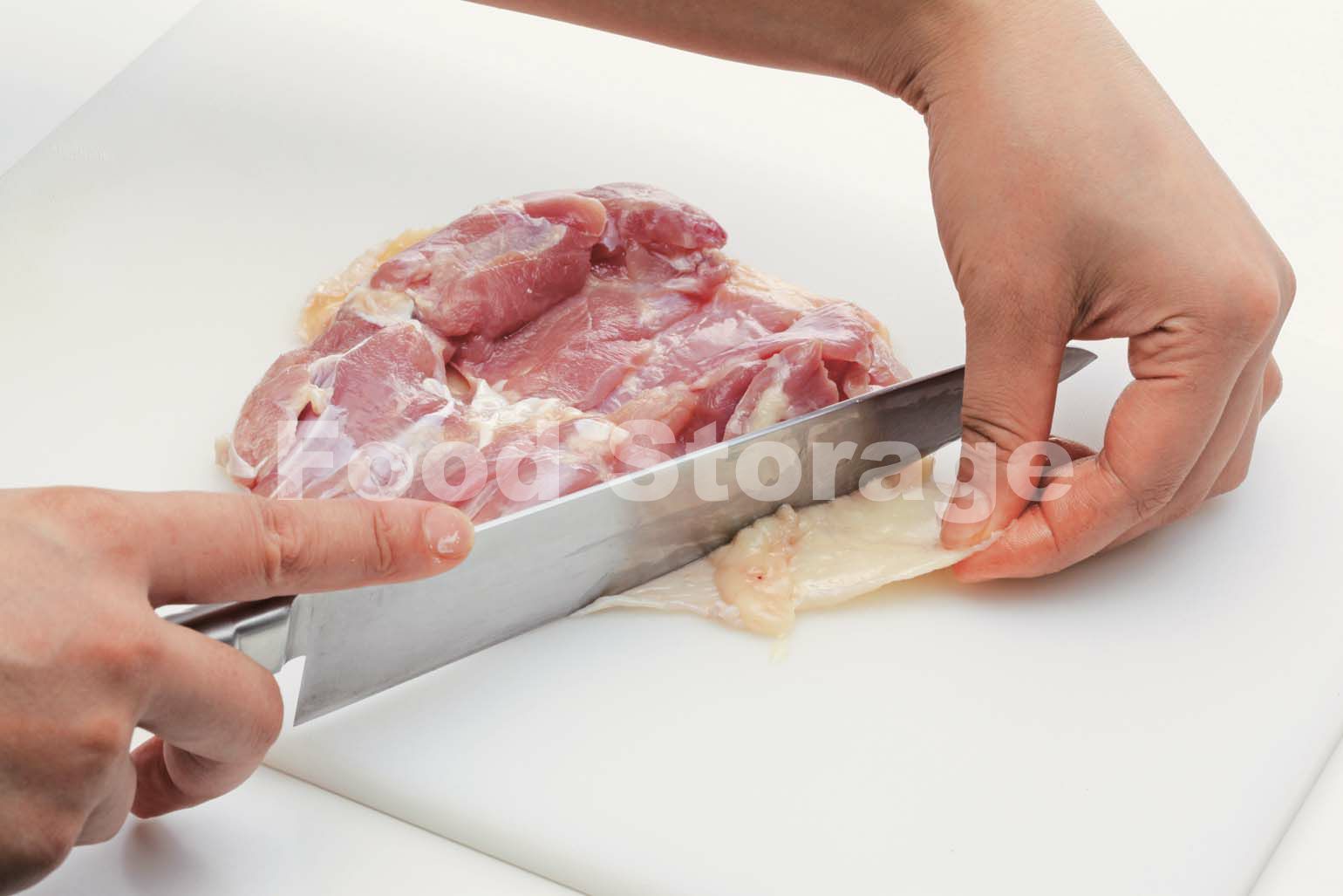 鶏もも肉は余分な脂身を取り除き、ひと口大に切る。 |