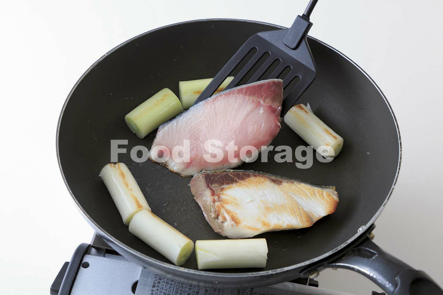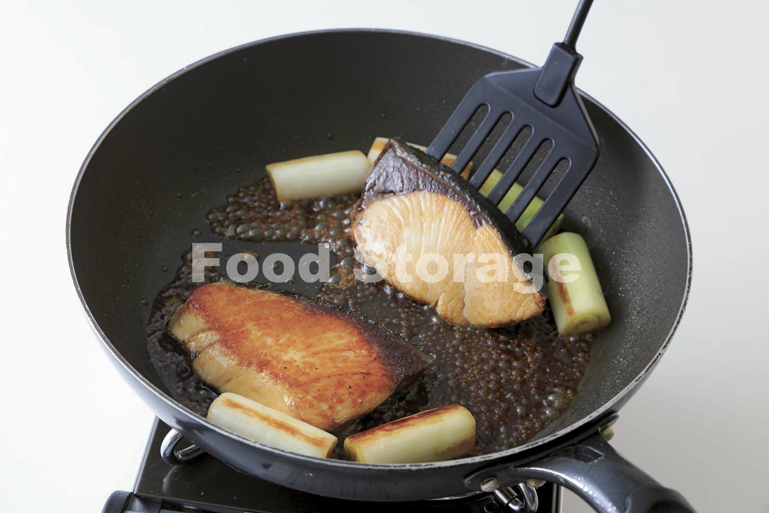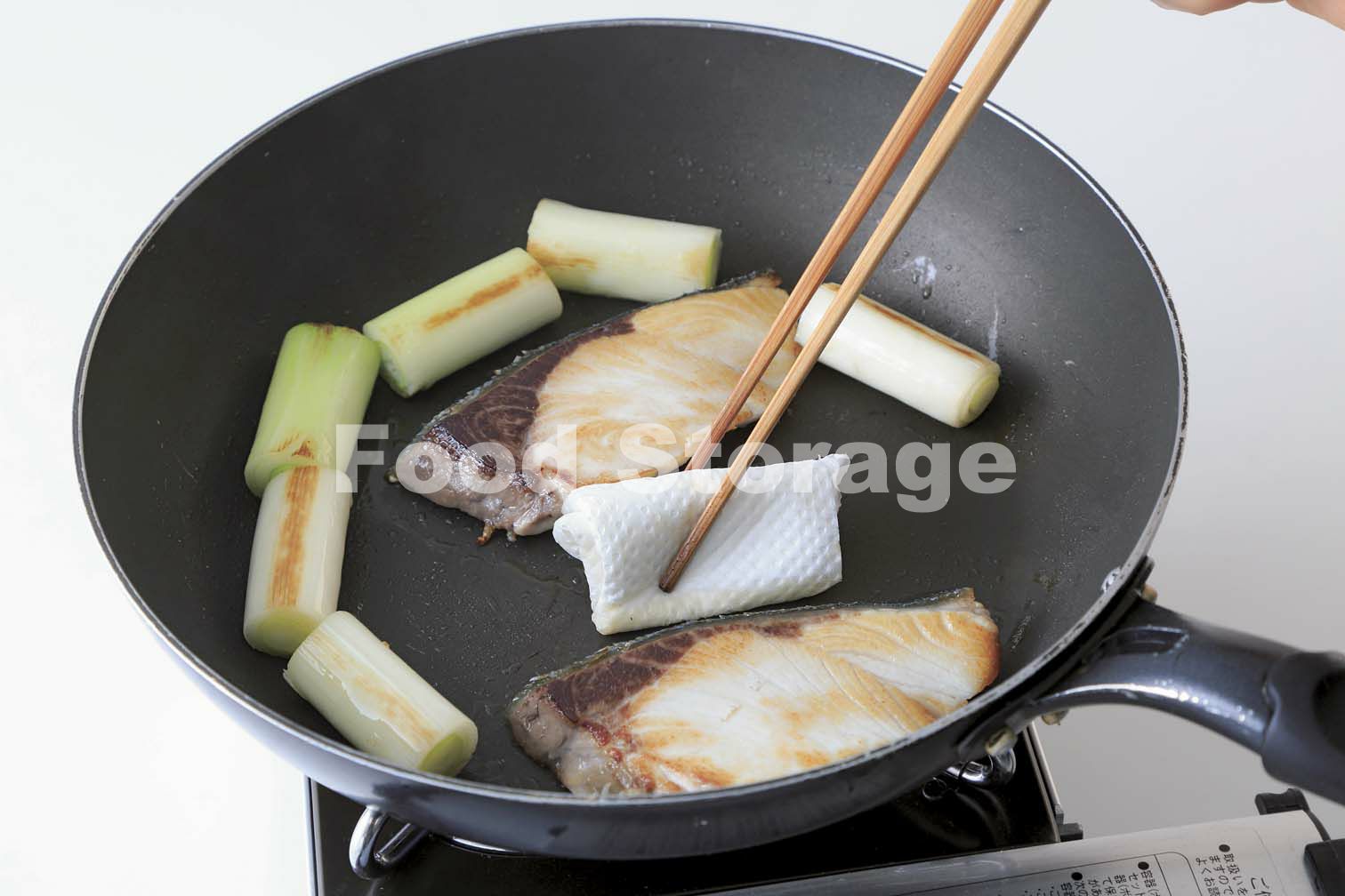 フッ素樹脂加工のフライパンを中火で熱し、ぶり、長ねぎを並び入れる。ぶりは焼き色がついたら裏返す。ししとうを加え、長ねぎを転がしながら弱火でさらに4〜5分焼く。 |