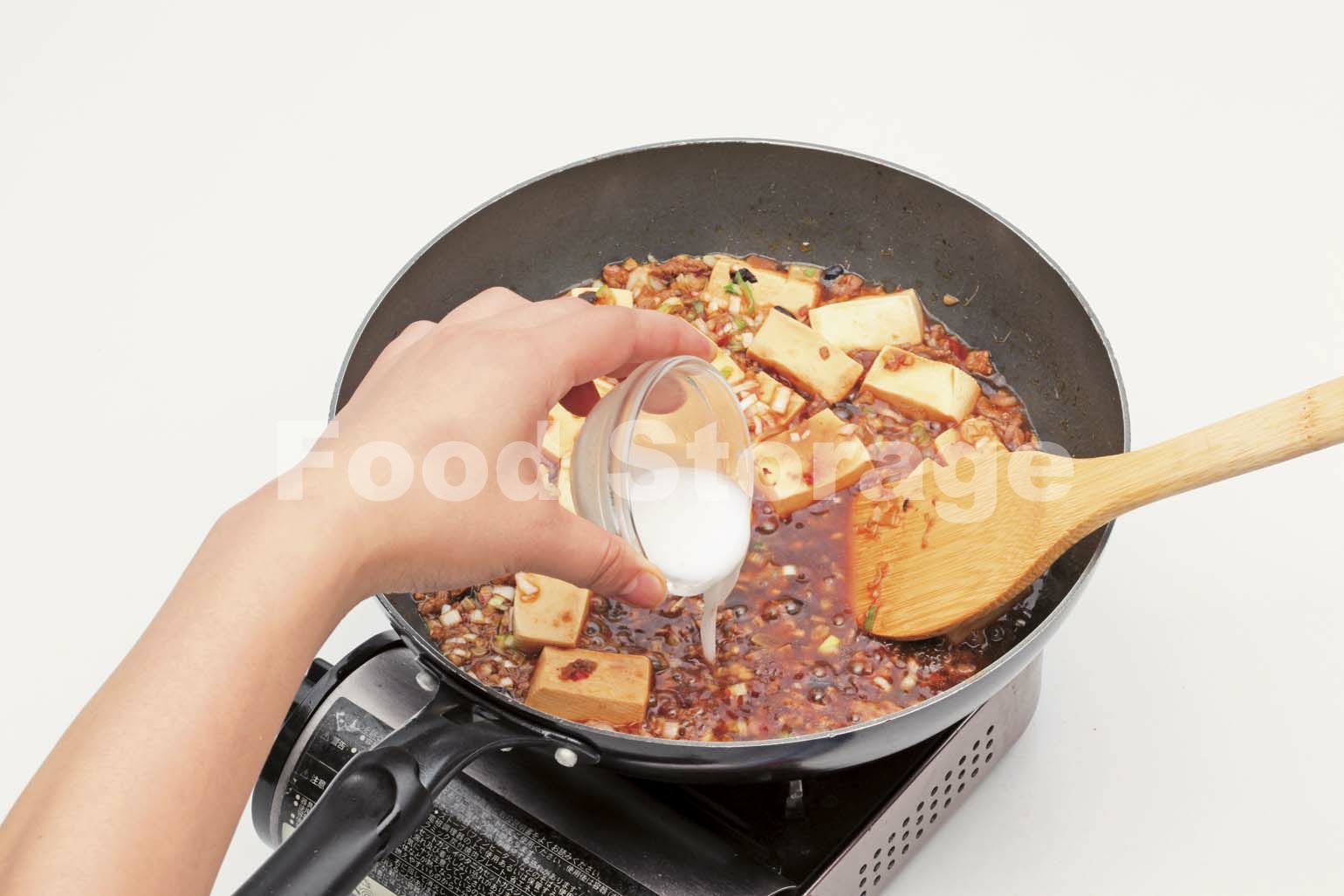 合わせたBを加えてよく混ぜ、煮立ってきたら1の豆腐を加えて、そのまま2分ほど煮る。 |