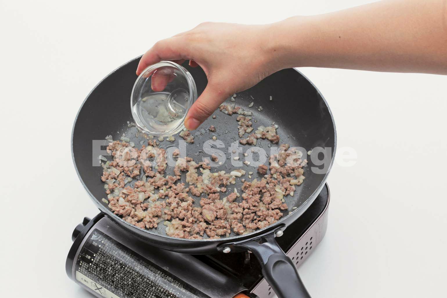 玉ねぎはみじん切りにする。フライパンにサラダ油を中火で熱し、バターと玉ねぎを加えて炒め、しんなりしたら合いびき肉を加える。肉の色が変わったらAを回しかけ、水分がなくなったら火を止める。