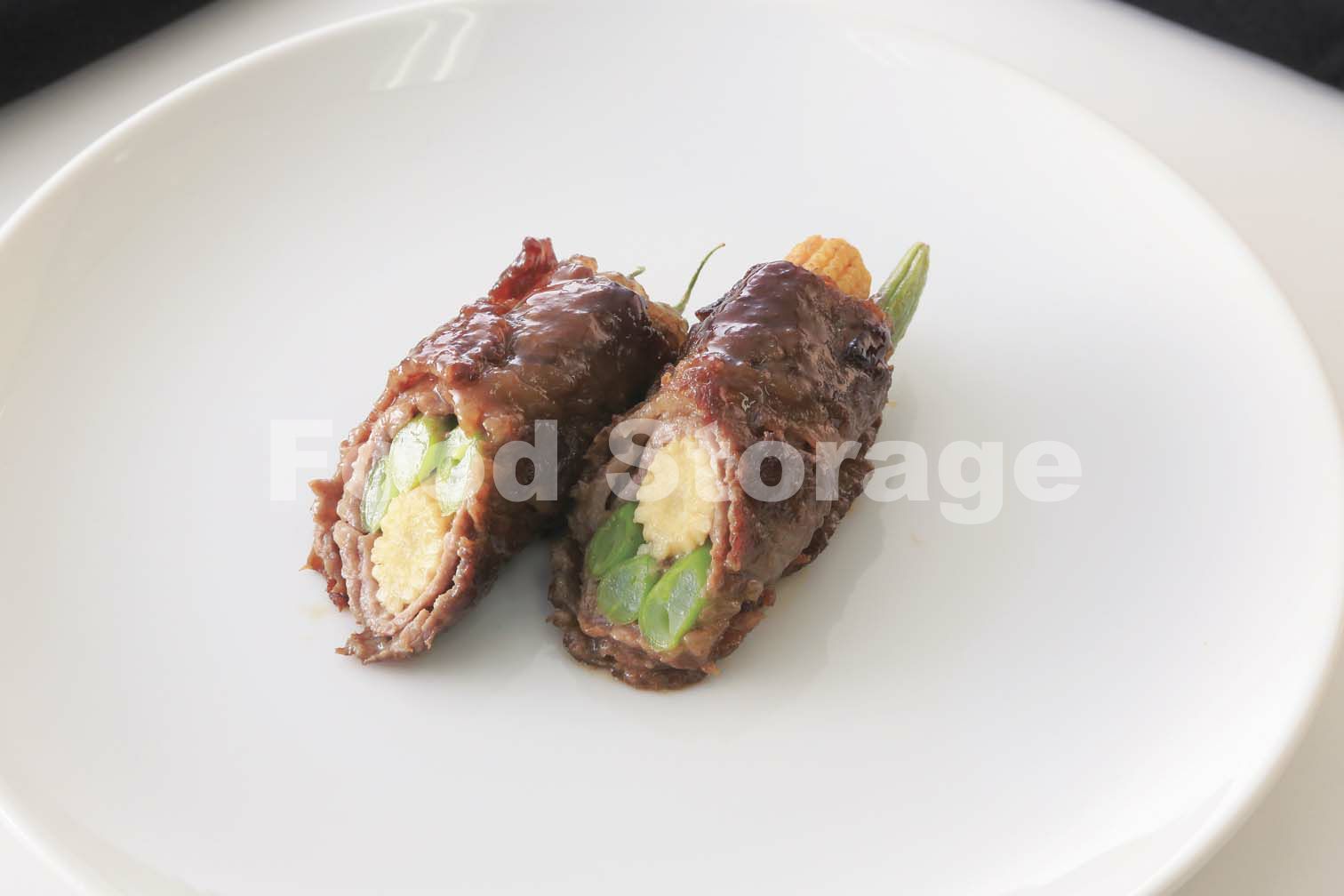 <牛肉のいんげん、ヤングコーン巻き>