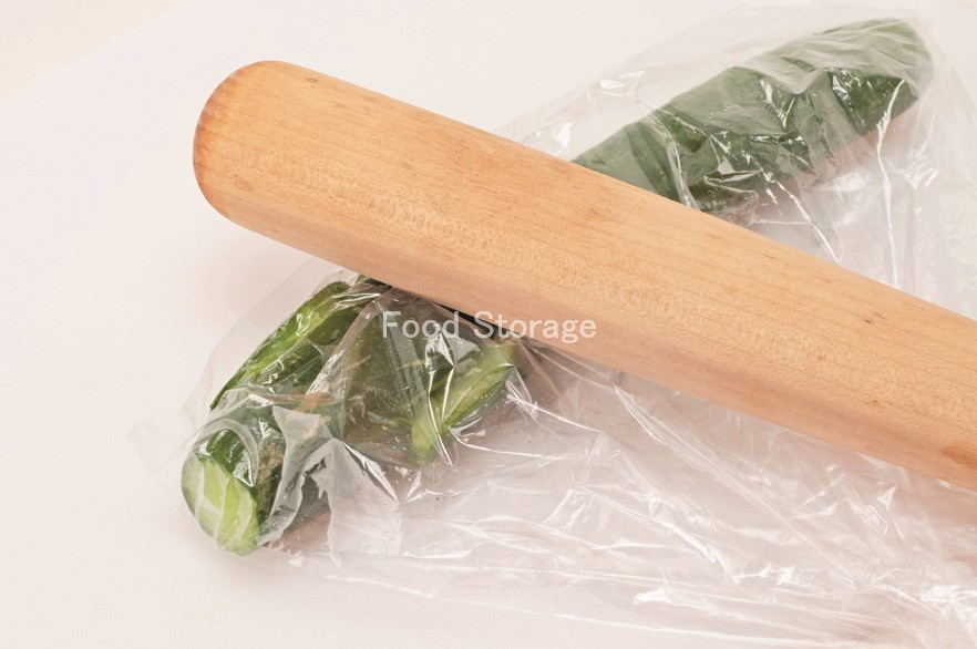 きゅうりはポリ袋に入れてめん棒などでたたき、食べやすい大きさにする。