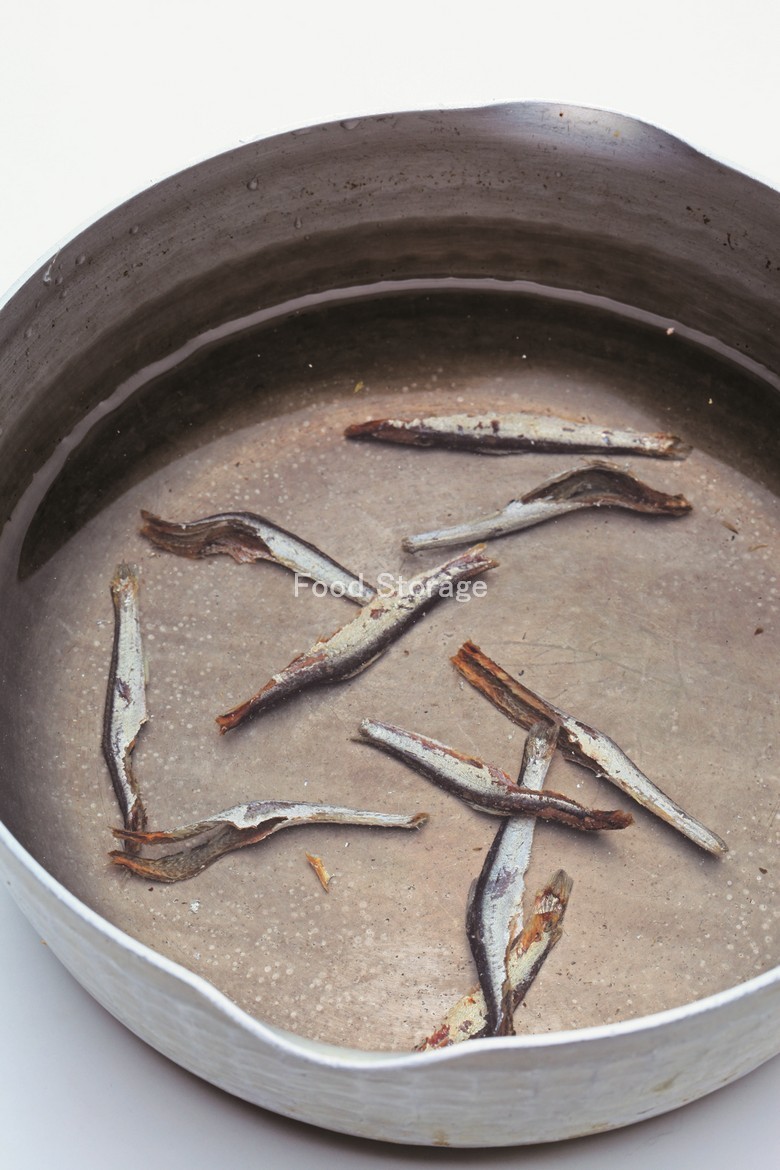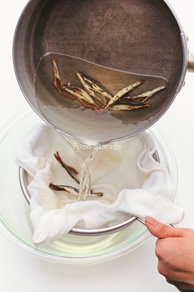 煮干しは頭と腹を除き、水に30分~1時間浸ける。 |