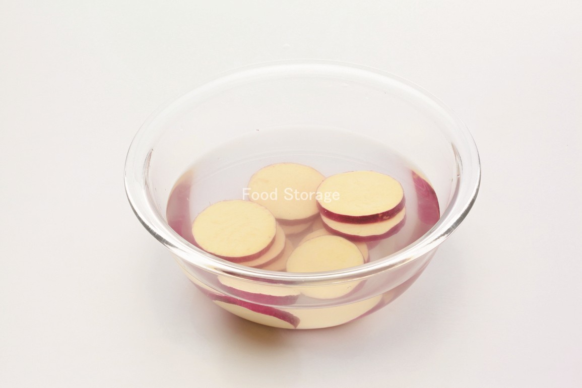さつまいもは水にさらす時間が長いと、色が悪くなるので、さっと浸す程度に。