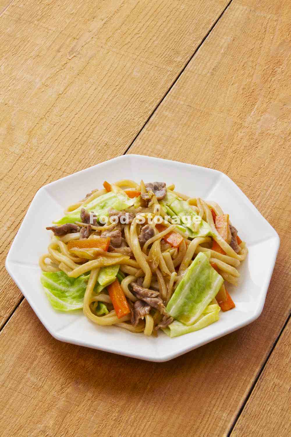 ゆでうどんと炒め合わせてしょうゆ少々を回しかける。 |
