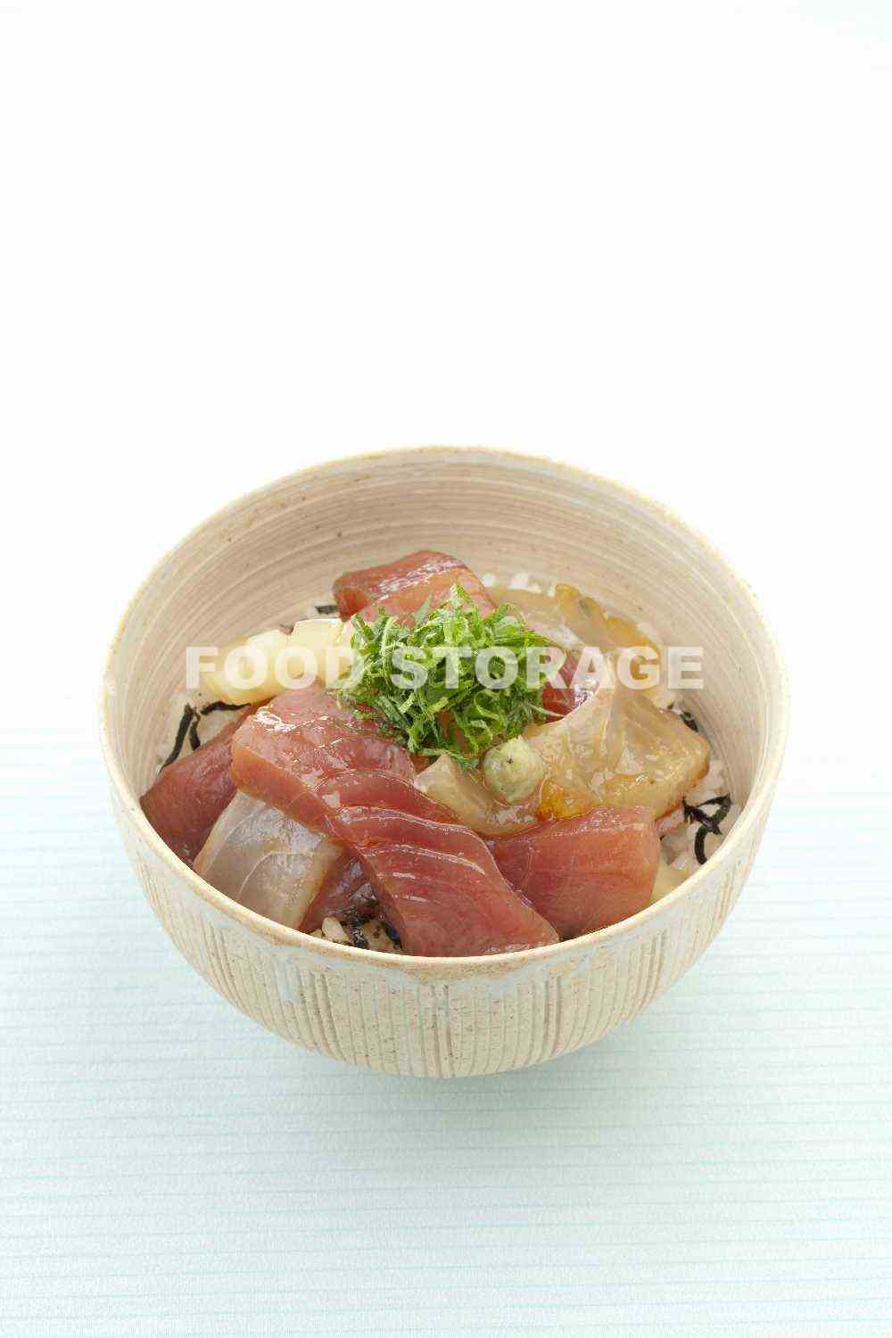 しょうゆ、みりん、酒を合わせたたれに刺身を漬け、刻みのりをのせた温かいごはんの上にのせて青字を、わさびをのせる。 |