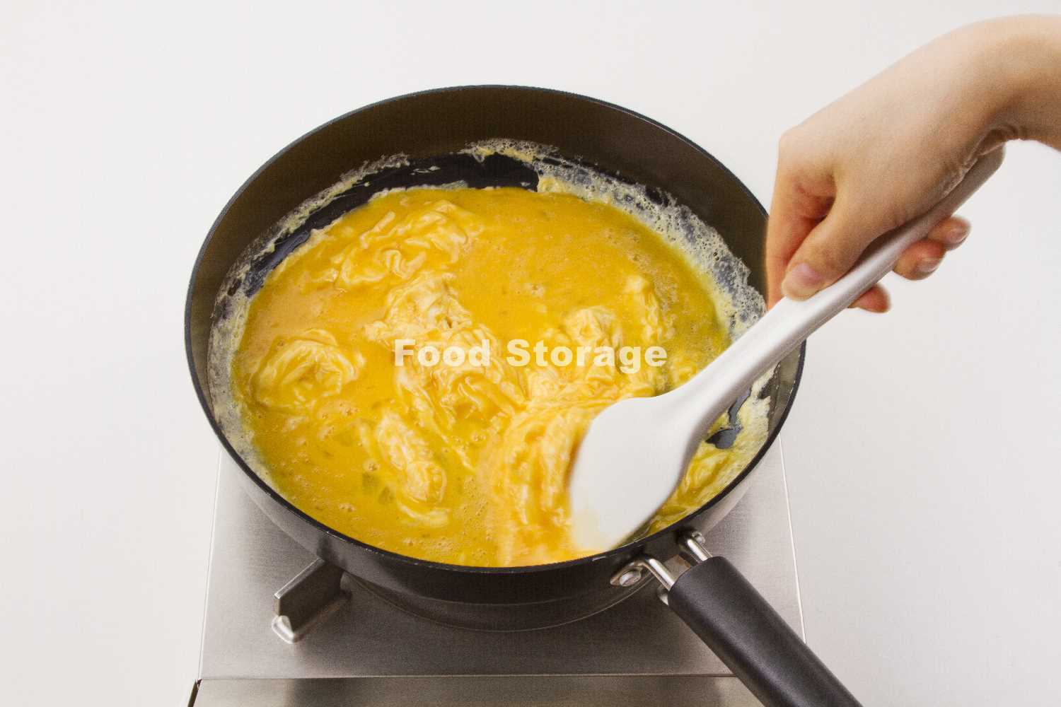 あせらずにゆっくり大きく混ぜるのがコツ。へらは卵が扱いやすい耐熱シリコン製がおすすめ。 |