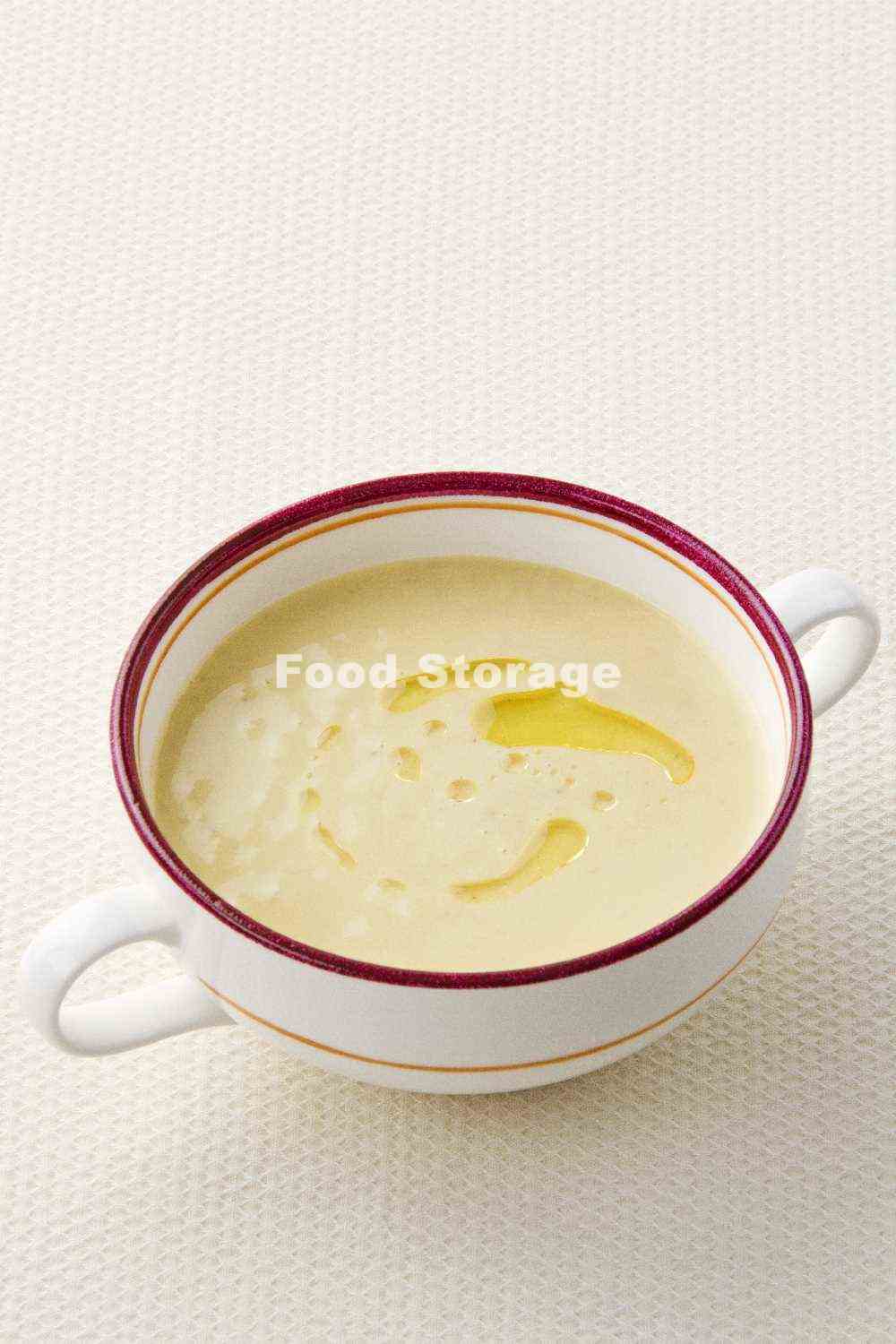 「さつまいものマーマレード煮」、牛乳、生クリーム、顆粒コンソメスープの素をミキサーでなめらかになるまで攪拌し、鍋でひと煮立ちさせてオリーブ油をたらす。 |