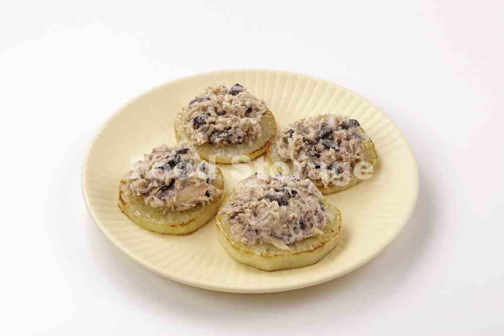 さば缶は缶汁をきり、ボウルに入れて身をほぐす。 |
