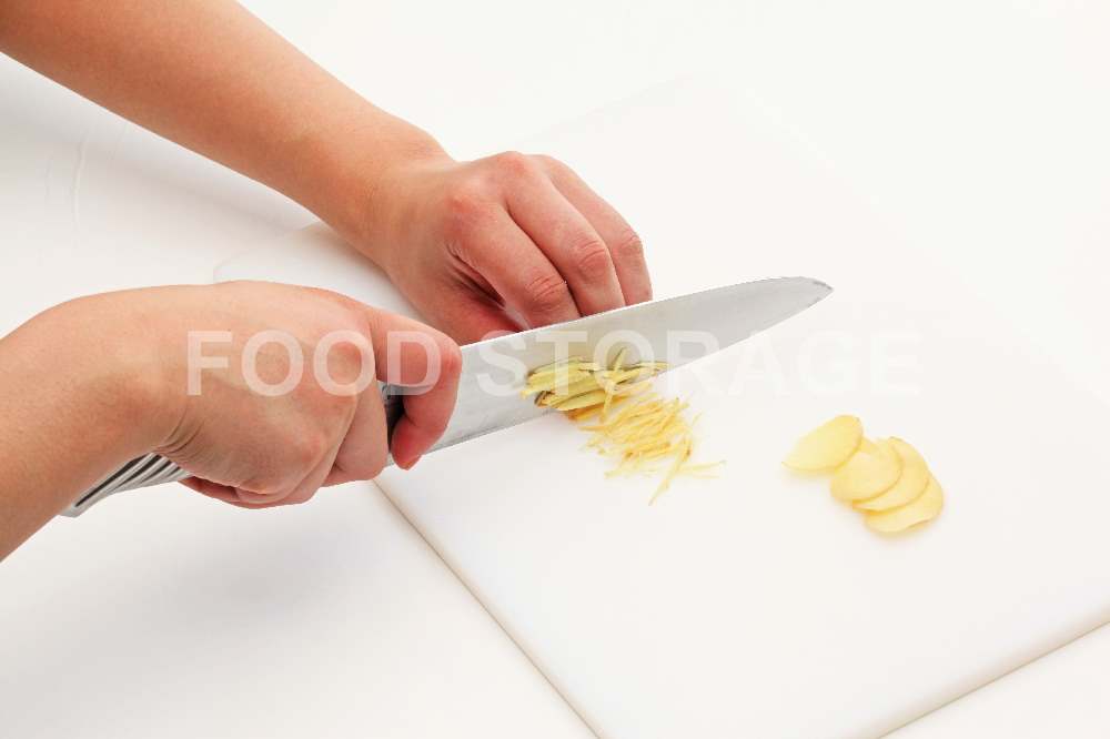 しょうがは皮をむき、半分は薄切り、半分は針しょうがにする。 |