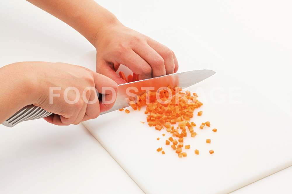 にんじんは皮をむき、みじん切りにする。
