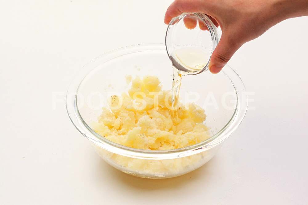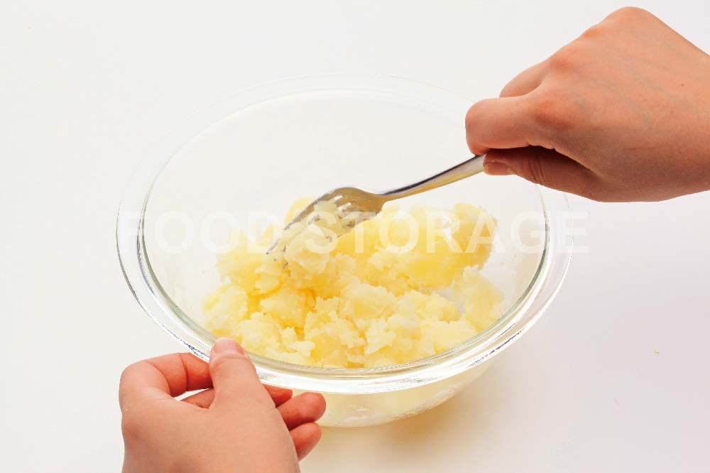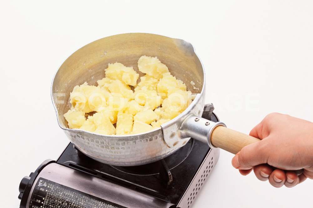 Point:じゃがいもは熱いうちにつぶすとさらっとした仕上がりになる。 |