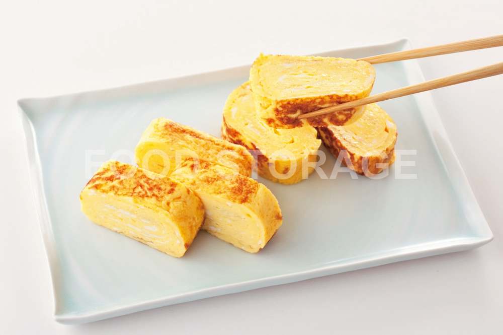 残りの卵液の1/3両を流し入れ、巻いた卵を持ち上げて、下にも卵液を入れる。奥から手前にむけて巻き、⑤からをあと2回繰り返して焼き上がり。 |
