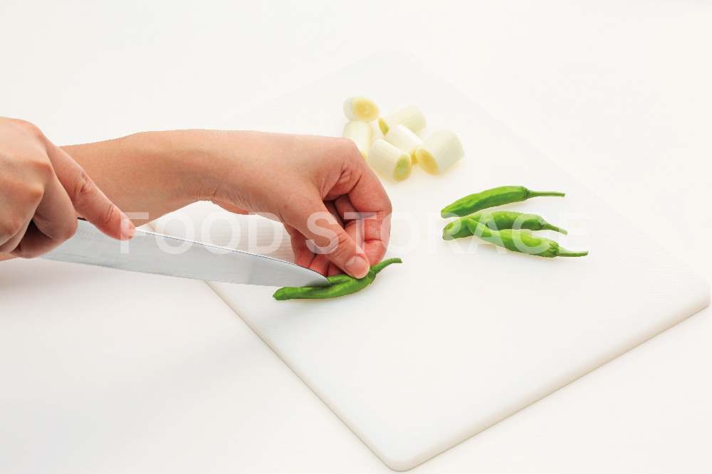長ねぎは6等分に切り、ししとうは包丁で切り込みを入れる。