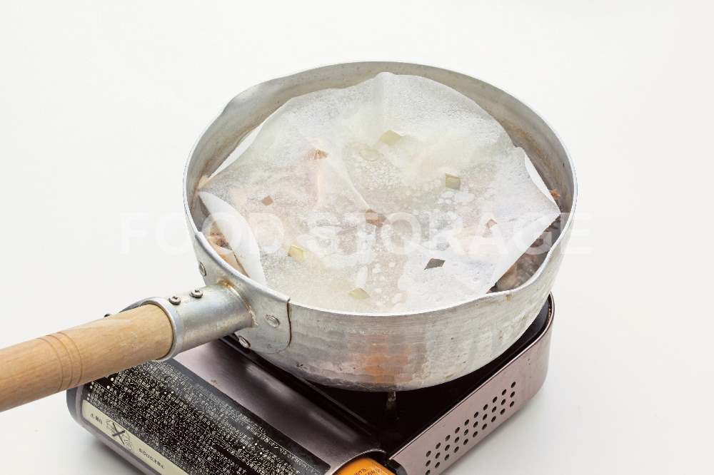 Bを加えて水でぬらした落としぶたをし、中火で10分ほど煮る。 |