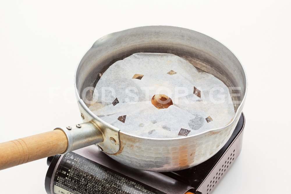 水でぬらした落としぶたをし、中火で煮る。 |