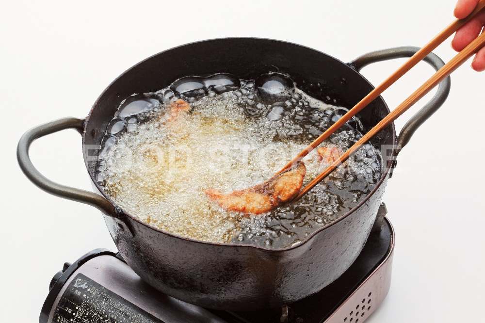 ③に片栗粉をまぶし、余分な粉を落とす。 |