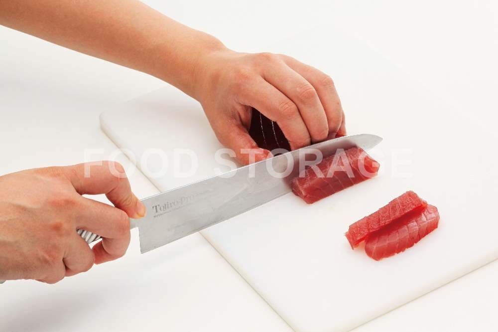 Point:刺身は包丁を引くようにして切る。 |