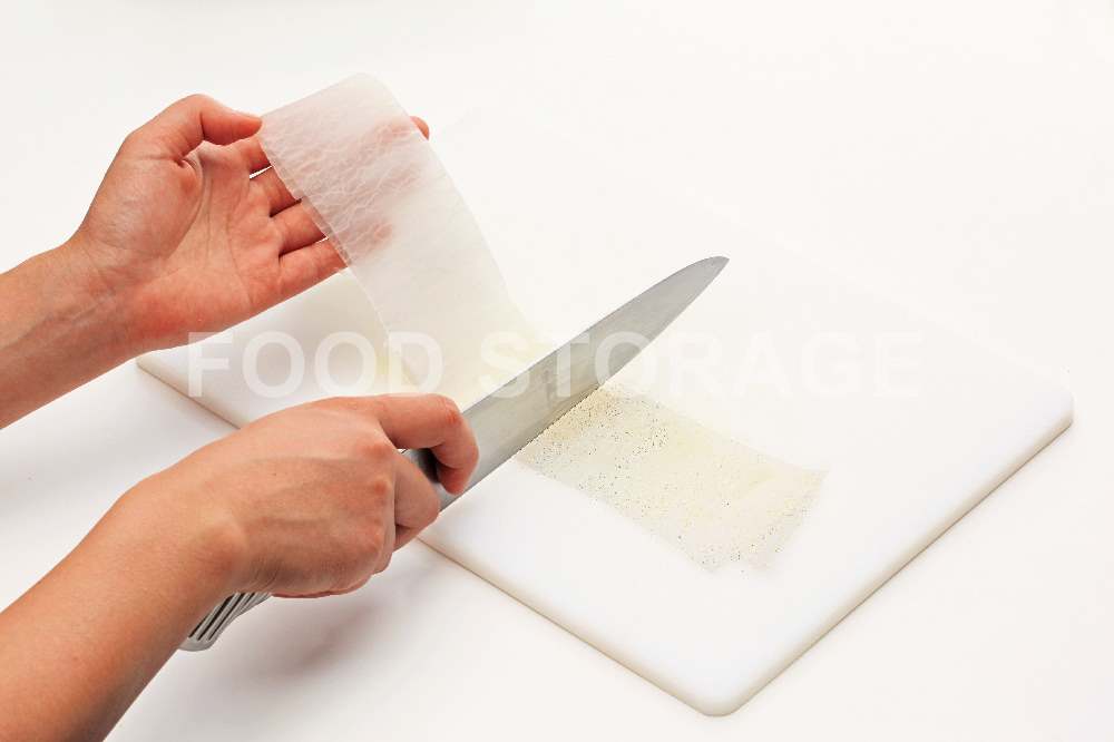 包丁全体を引くようにして、まっすぐに引き下ろして切る。
