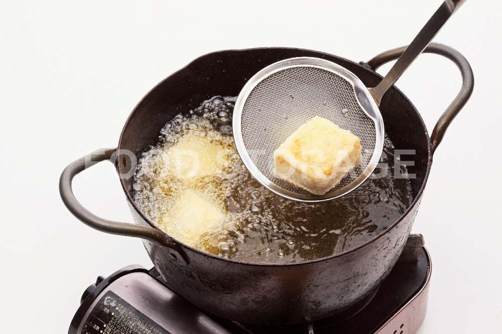 揚げ油を160℃に熱し、④を入れてきつね色になるまで揚げ、強火にしてカラッと揚げ、よく油をきる。器に盛って、③をかけ、②をのせる。 |