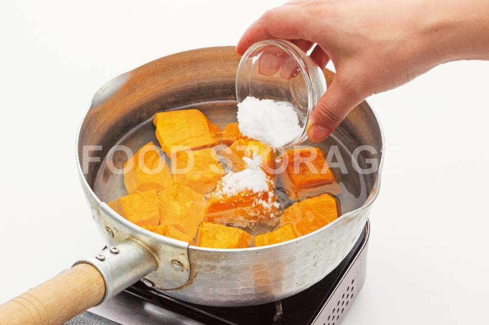 鍋にかぼちゃの皮を下にして重ならないように入れ、A