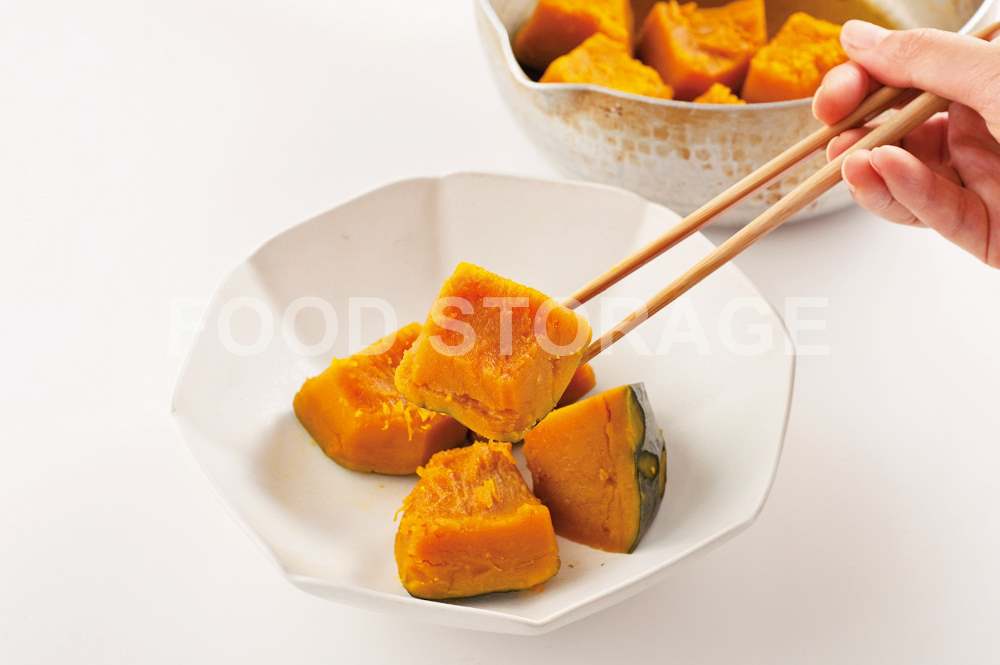 器にまずかぼちゃを4個おき、その上に重ねて、山形になるように盛る。最後に煮汁を回しかける。 |