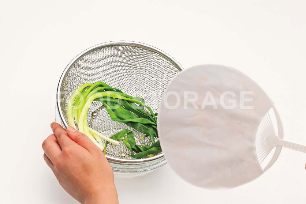 Point:水煮浸けずに冷ますと、わけぎが水っぽくならない。 |