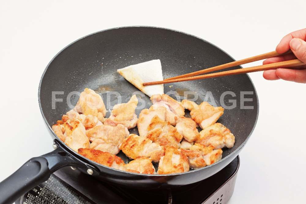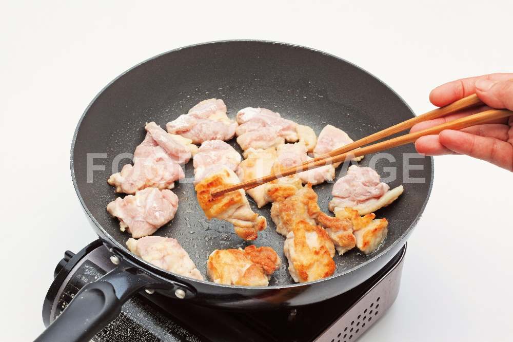 鍋にサラダ油を入れて、強火で熱し、2を皮目を下にして並べ入れ、焼き色をつけて裏返し、両面に焼き色をつける。 |