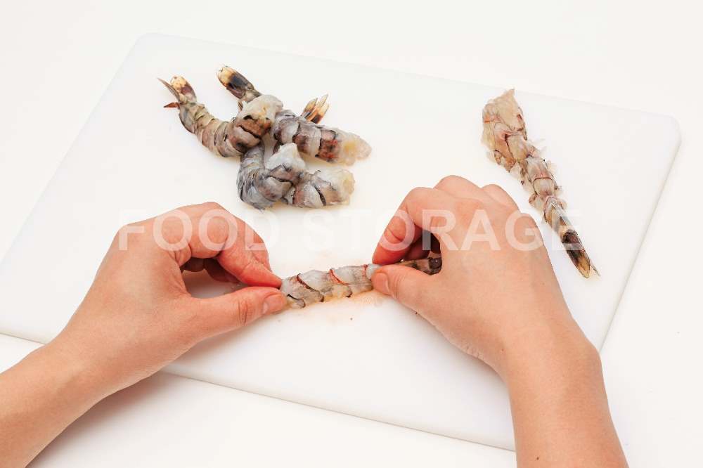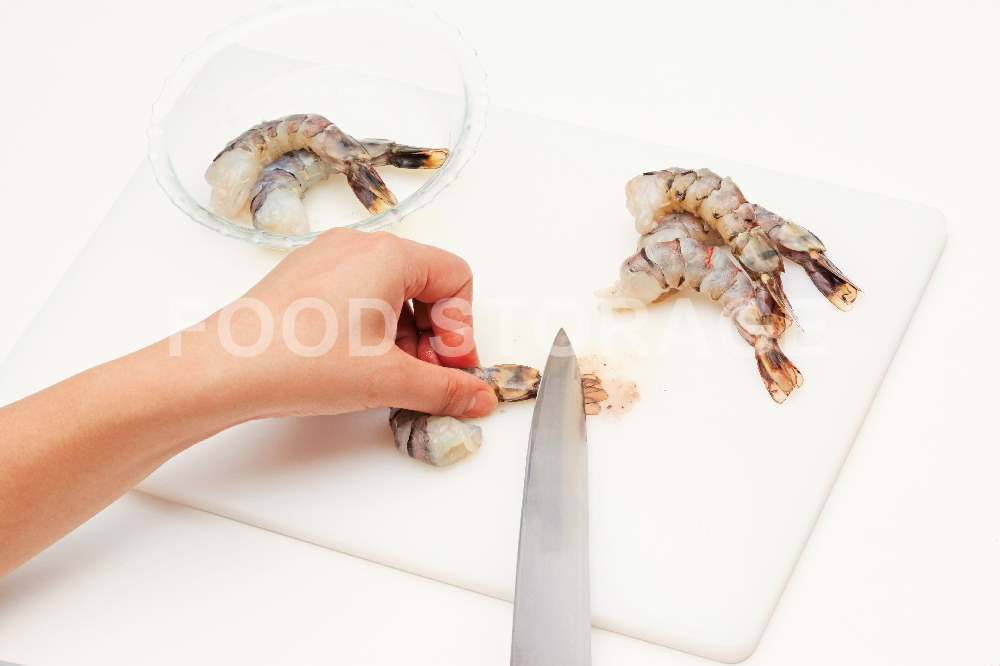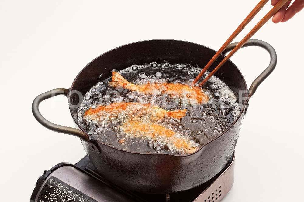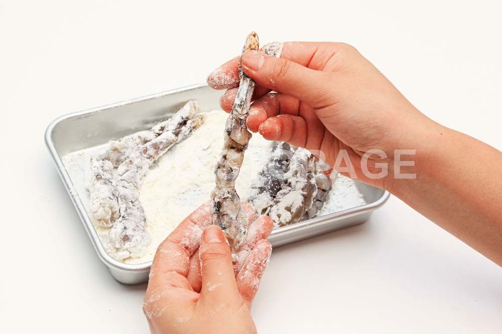 POINT:えびの筋切りをすると、曲がらずにきれいに揚がる。 |